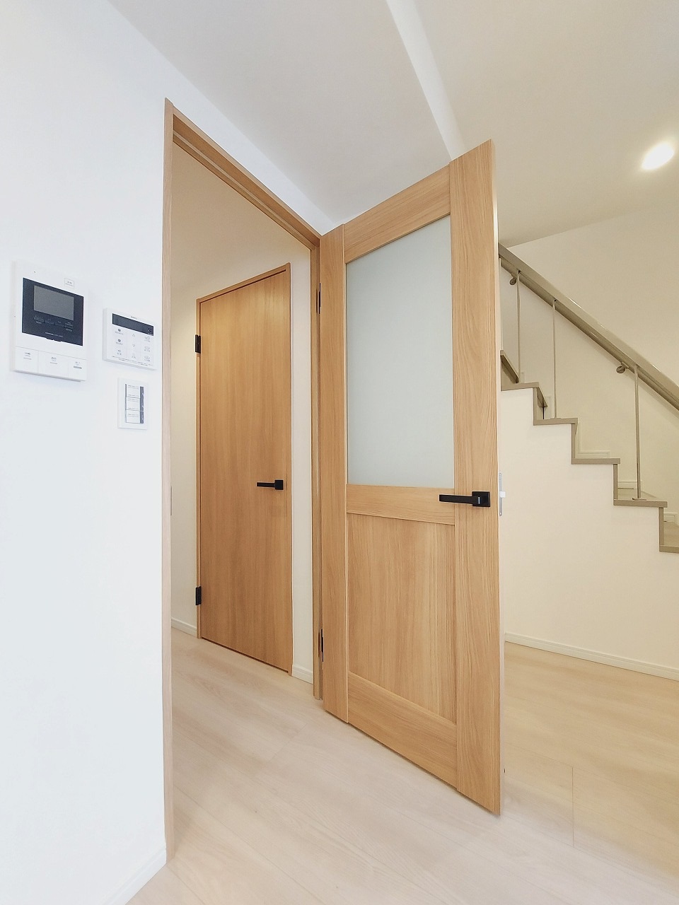 木の温かみのある建具をセレクト、木目を感じるスタイルです