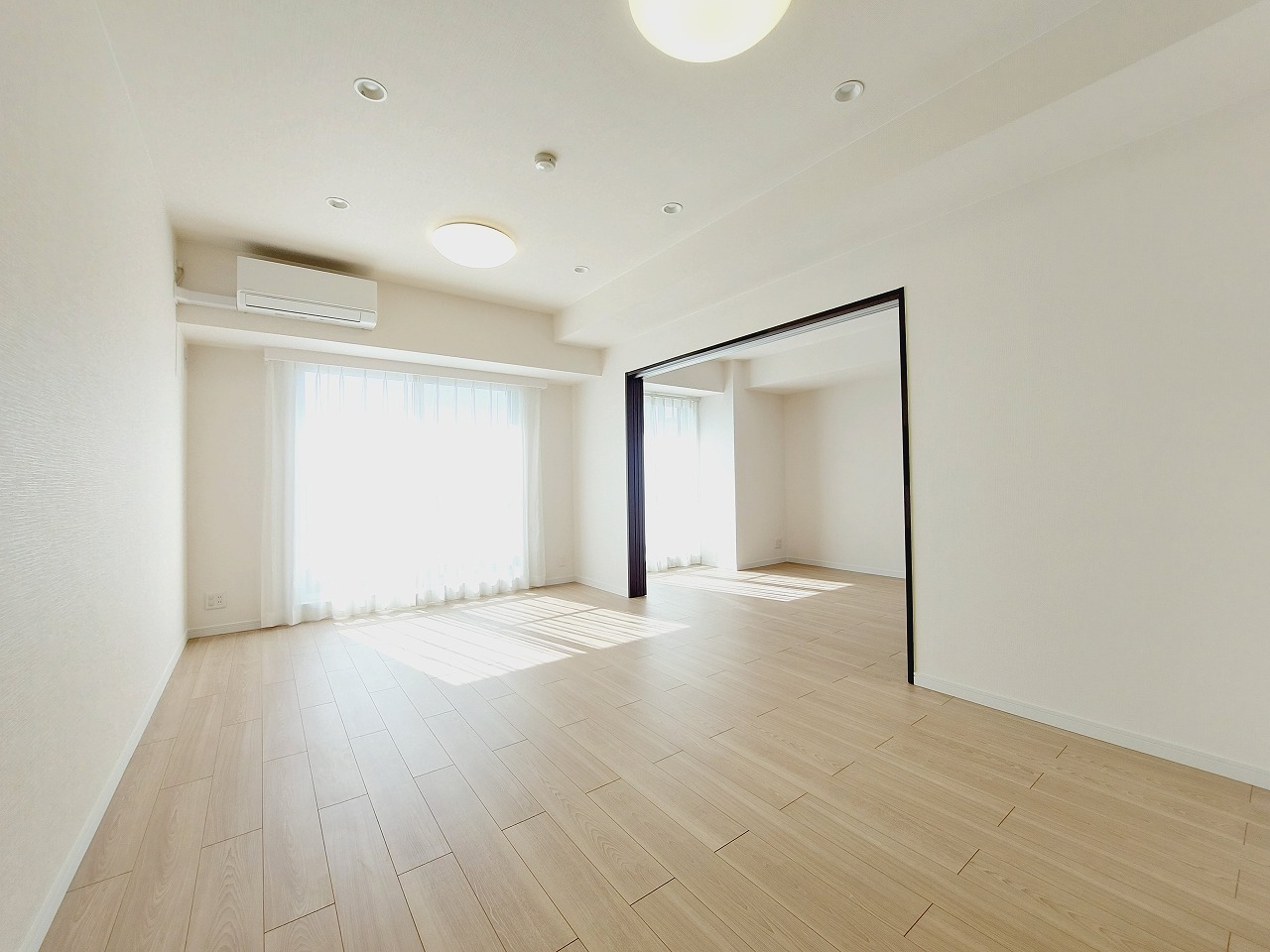 窓側から見たリビング~洋室 洋室は引き戸タイプですので開けても良し