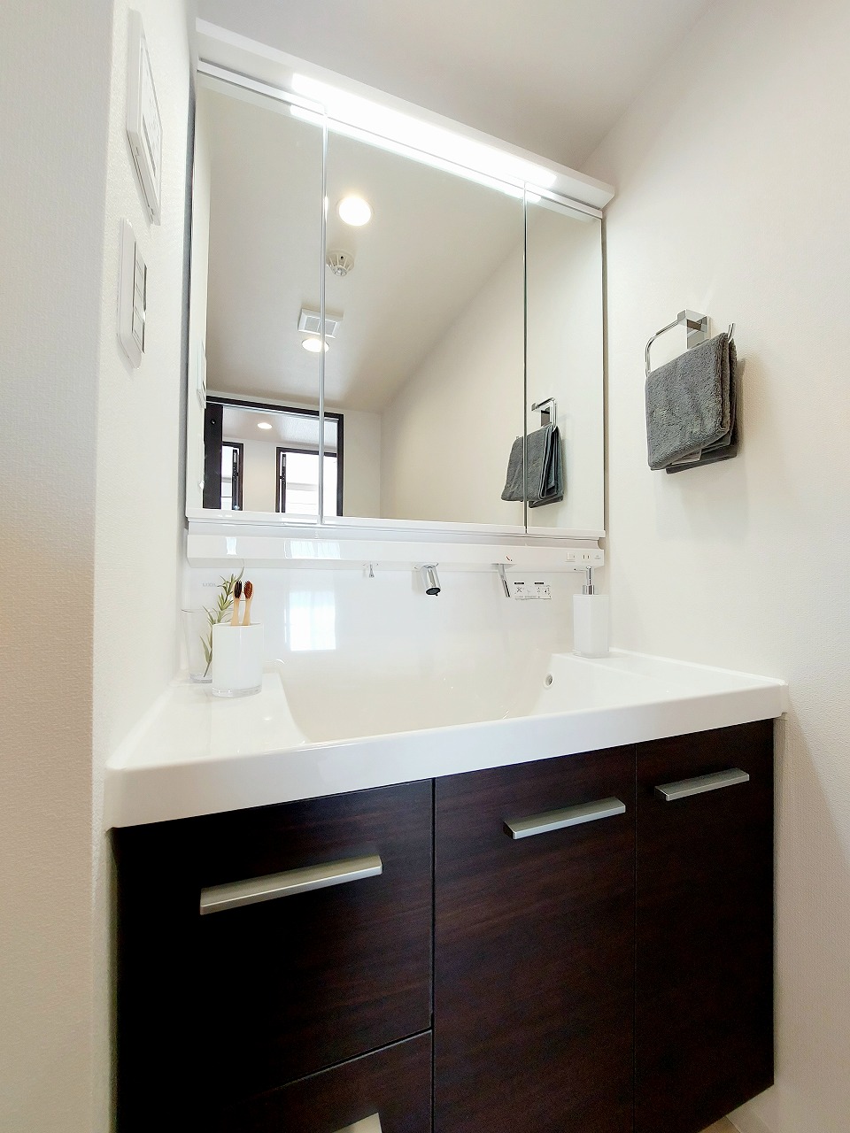 洗面化粧台も新規交換♪3面鏡タイプです!