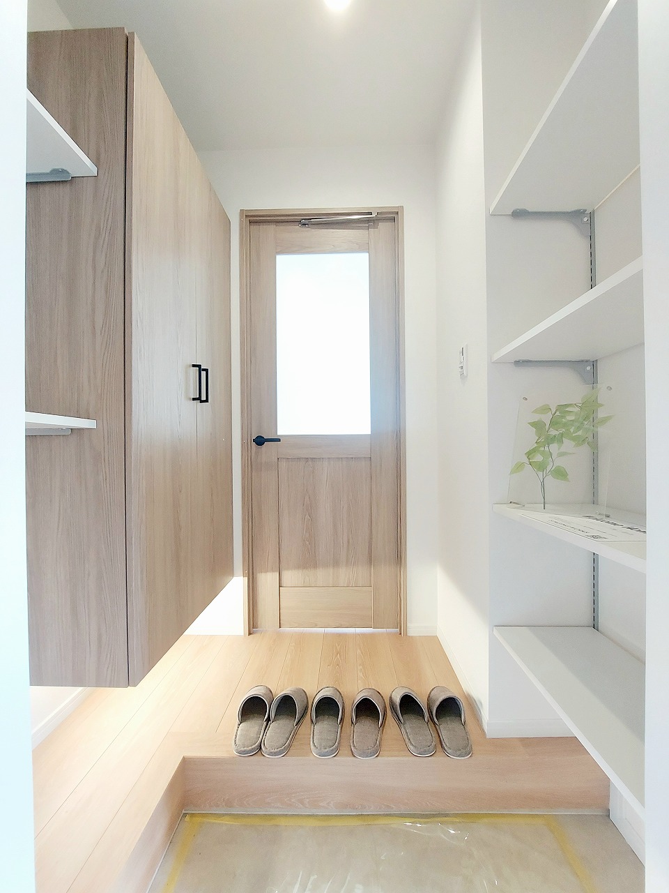 収納にも困らない玄関 棚やシューズクローゼット完備