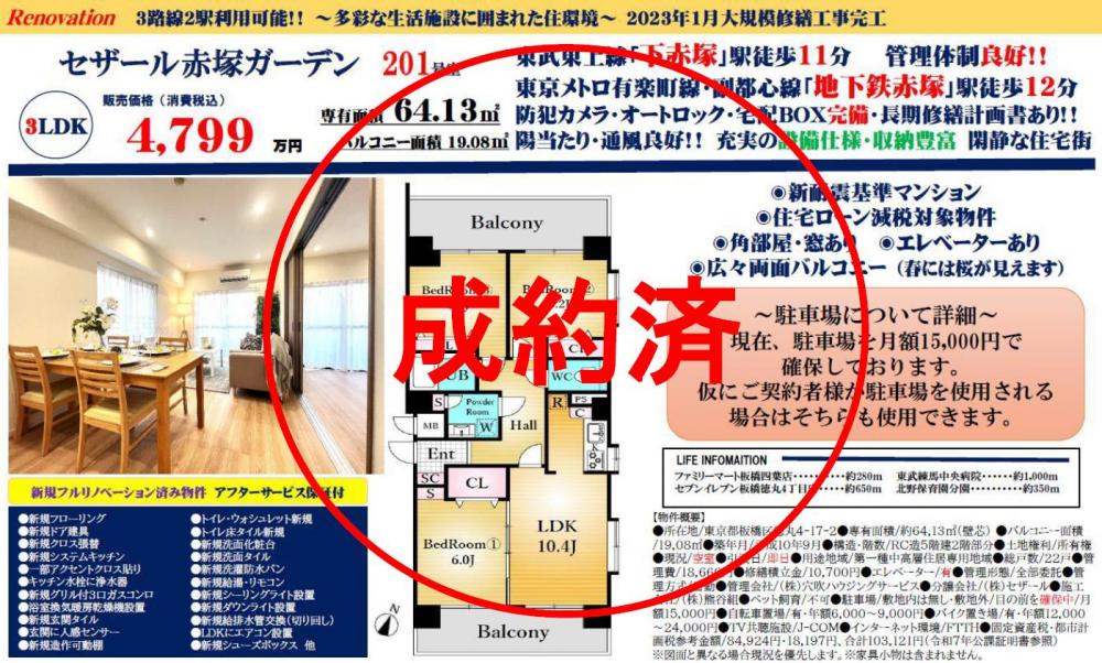 セザール赤塚ガーデン≪新規内装リノベーション実施≫の自社物件WEBチラシ情報 | 豊島区・中野区・新宿区の中古マンション・リノベーション情報なら池袋のアイベックスホーム!