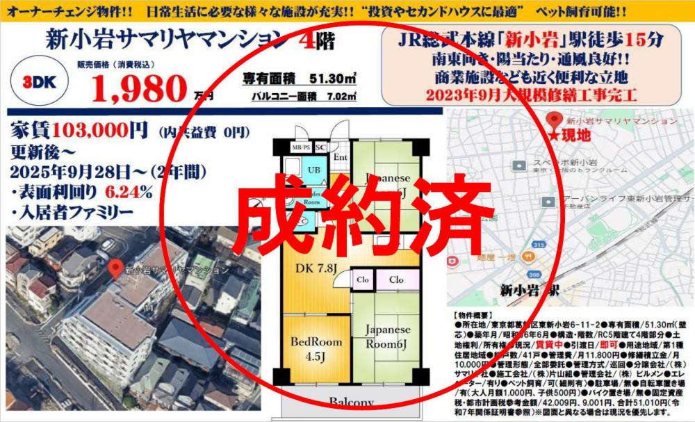 新小岩サマリヤマンション≪オーナーチェンジ物件≫の自社物件WEBチラシ情報 | 豊島区・中野区・新宿区の中古マンション・リノベーション情報なら池袋のアイベックスホーム!