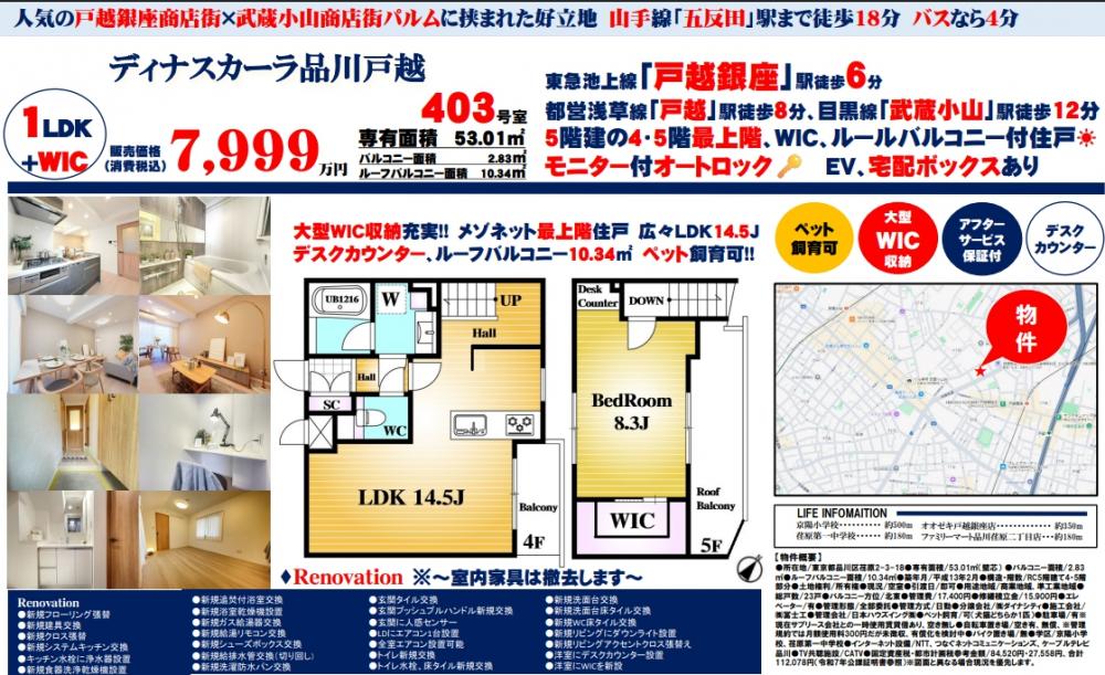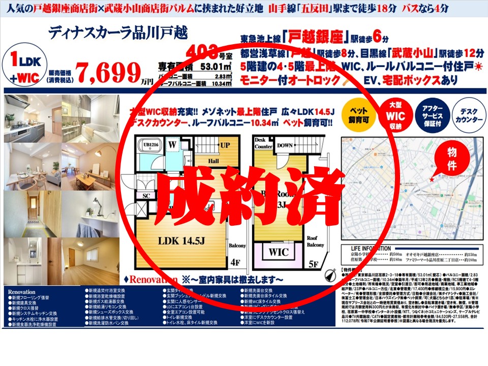 ディナスカーラ品川戸越≪新規内装リノベーション実施≫の自社物件WEBチラシ情報 | 豊島区・中野区・新宿区の中古マンション・リノベーション情報なら池袋のアイベックスホーム!