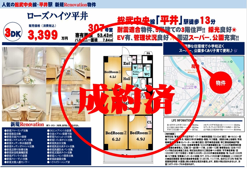 ローズハイツ平井≪新規内装リノベーション実施≫の自社物件WEBチラシ情報 | 豊島区・中野区・新宿区の中古マンション・リノベーション情報なら池袋のアイベックスホーム!