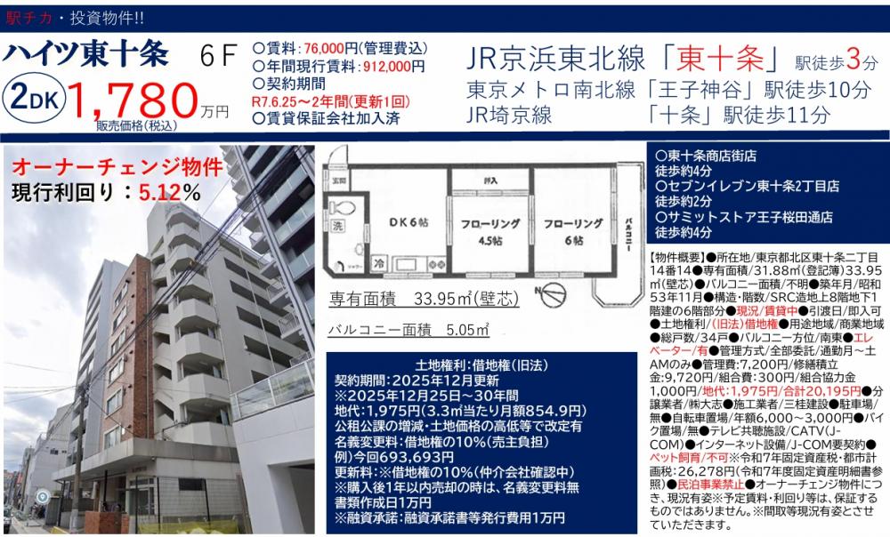 ハイツ東十条≪オーナーチェンジ物件≫の自社物件WEBチラシ情報 | 豊島区・中野区・新宿区の中古マンション・リノベーション情報なら池袋のアイベックスホーム!