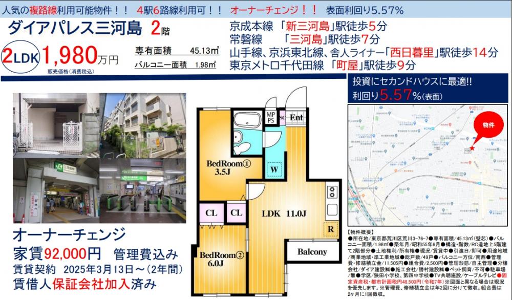 ダイアパレス三河島≪オーナーチェンジ物件≫の自社物件WEBチラシ情報 | 豊島区・中野区・新宿区の中古マンション・リノベーション情報なら池袋のアイベックスホーム!