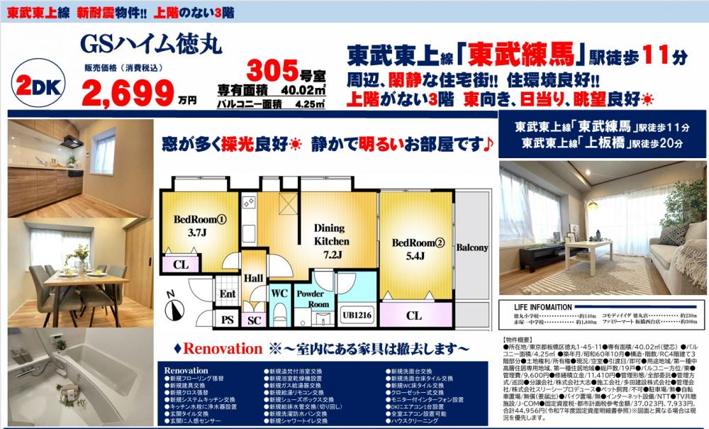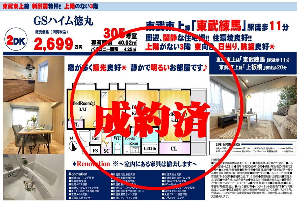 GSハイム徳丸≪新規内装リノベーション≫の自社物件WEBチラシ情報 | 豊島区・中野区・新宿区の中古マンション・リノベーション情報なら池袋のアイベックスホーム!