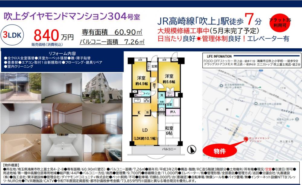吹上ダイヤモンドマンション≪ハウスクリーニング済≫の自社物件WEBチラシ情報 | 豊島区・中野区・新宿区の中古マンション・リノベーション情報なら池袋のアイベックスホーム!
