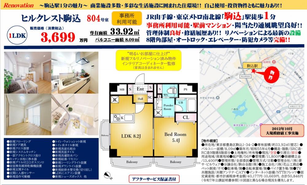 ヒルクレスト駒込≪新規内装リノベーション実施≫の自社物件WEBチラシ情報 | 豊島区・中野区・新宿区の中古マンション・リノベーション情報なら池袋のアイベックスホーム!