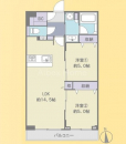 専有面積 | 62.42u | 間取り | 2LDK (LDK14.5/洋室5/洋室5) | ||