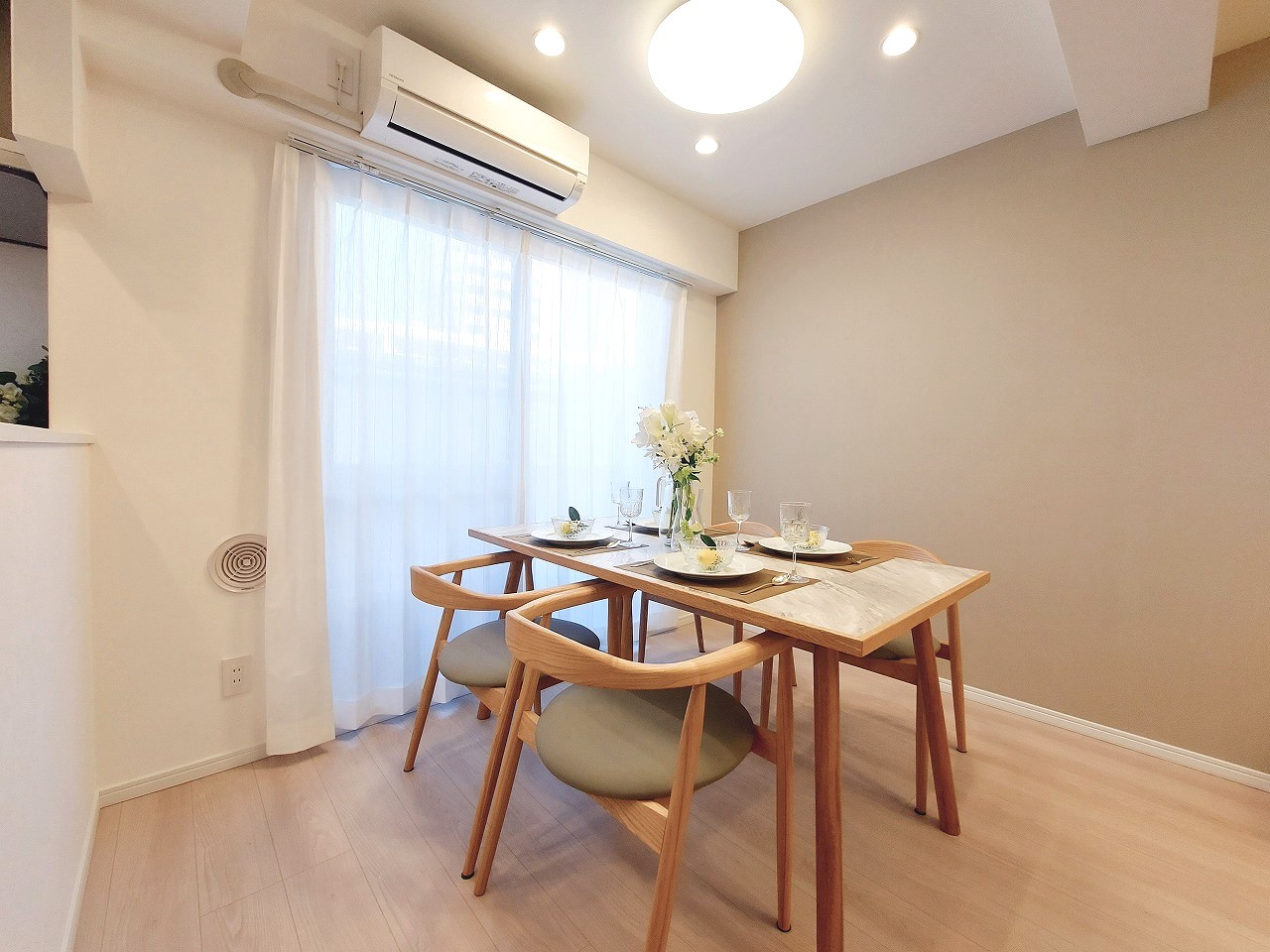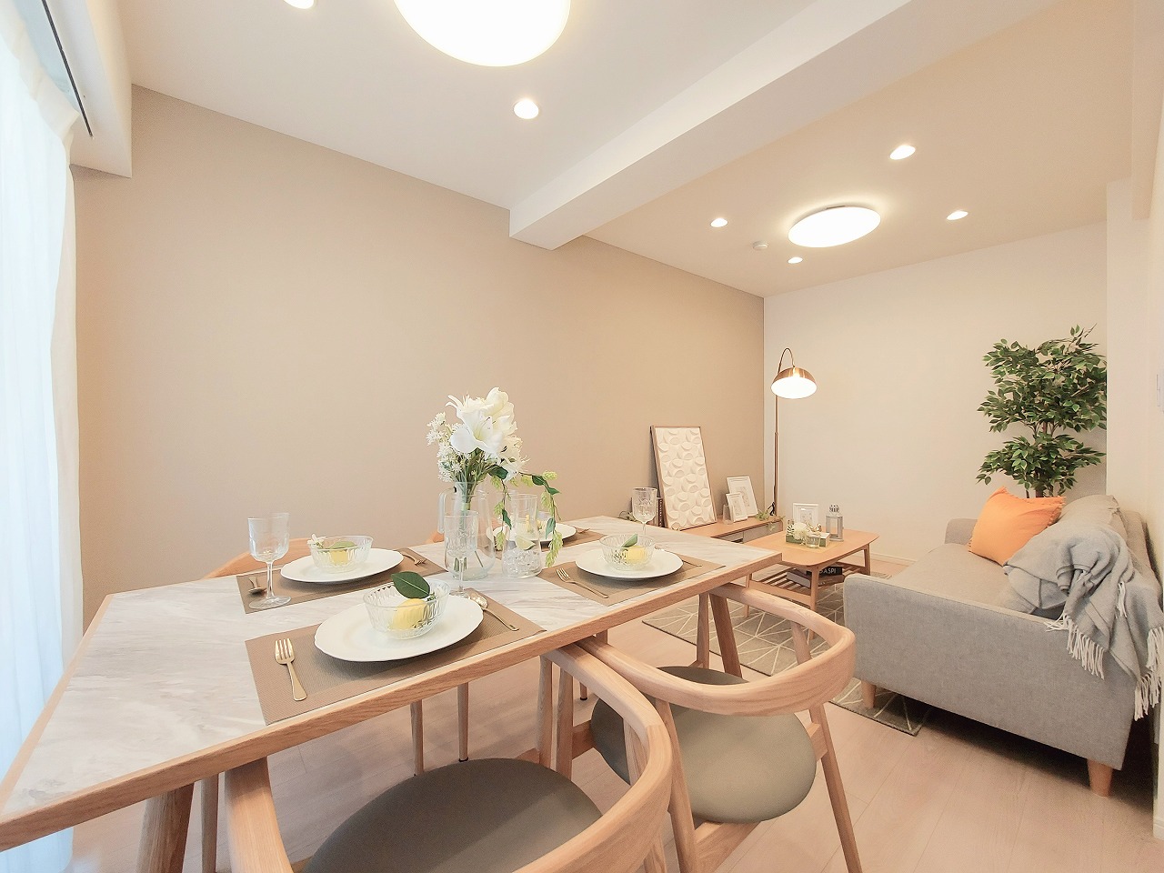 ディスプレイの家具は4人掛けテーブルですが、二人掛けテーブルでも可愛いと思います!