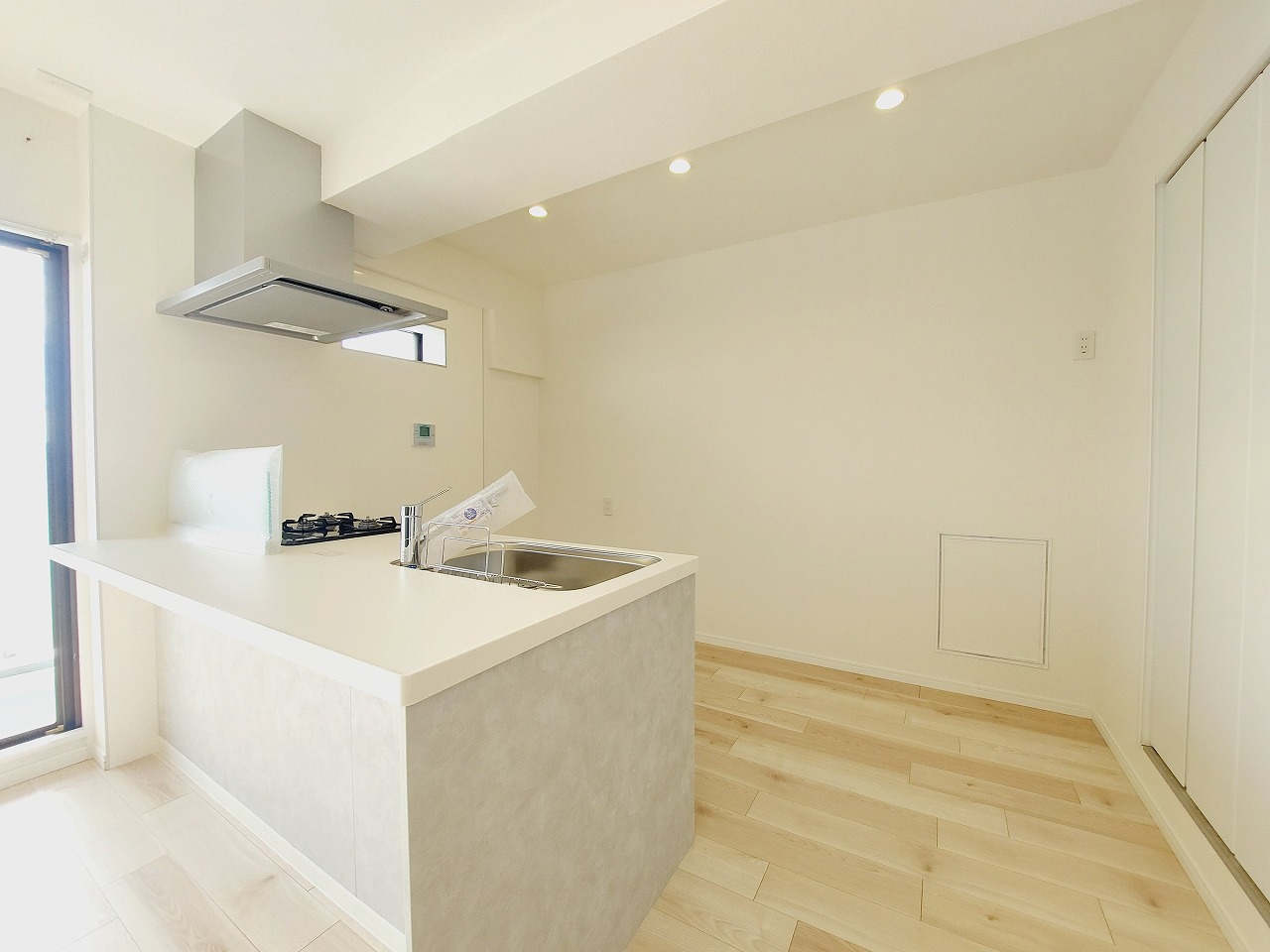 ゆとりのある広さでキャビネットなども置けるキッチンです