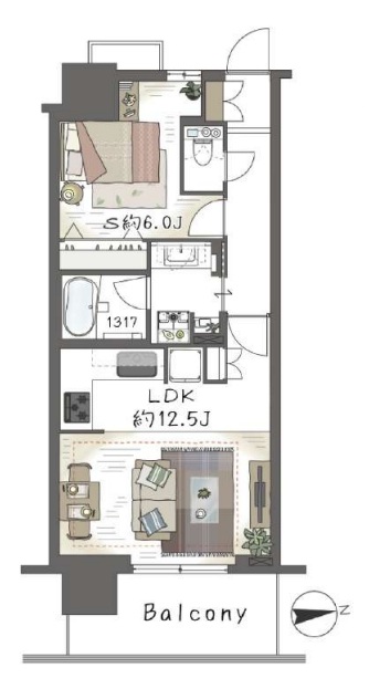 東南東向きの7階部分で陽あたり良好~ LDK12.5帖~