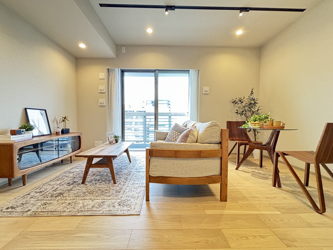 小さめのテーブルとソファセットが丁度良くおさまるリビング空間です
