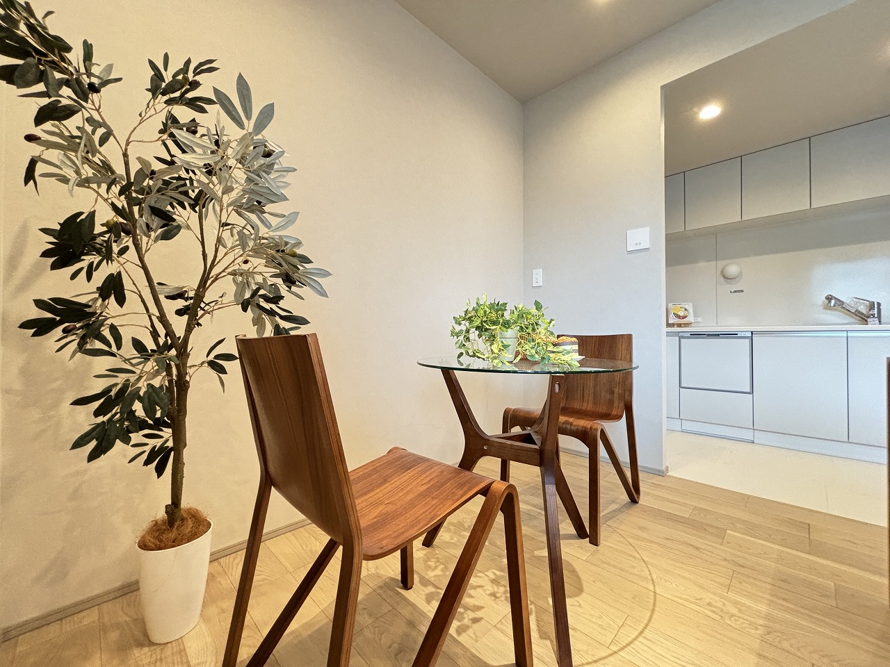キッチンは壁面にL字型に付いておりますのでリビングを邪魔しません