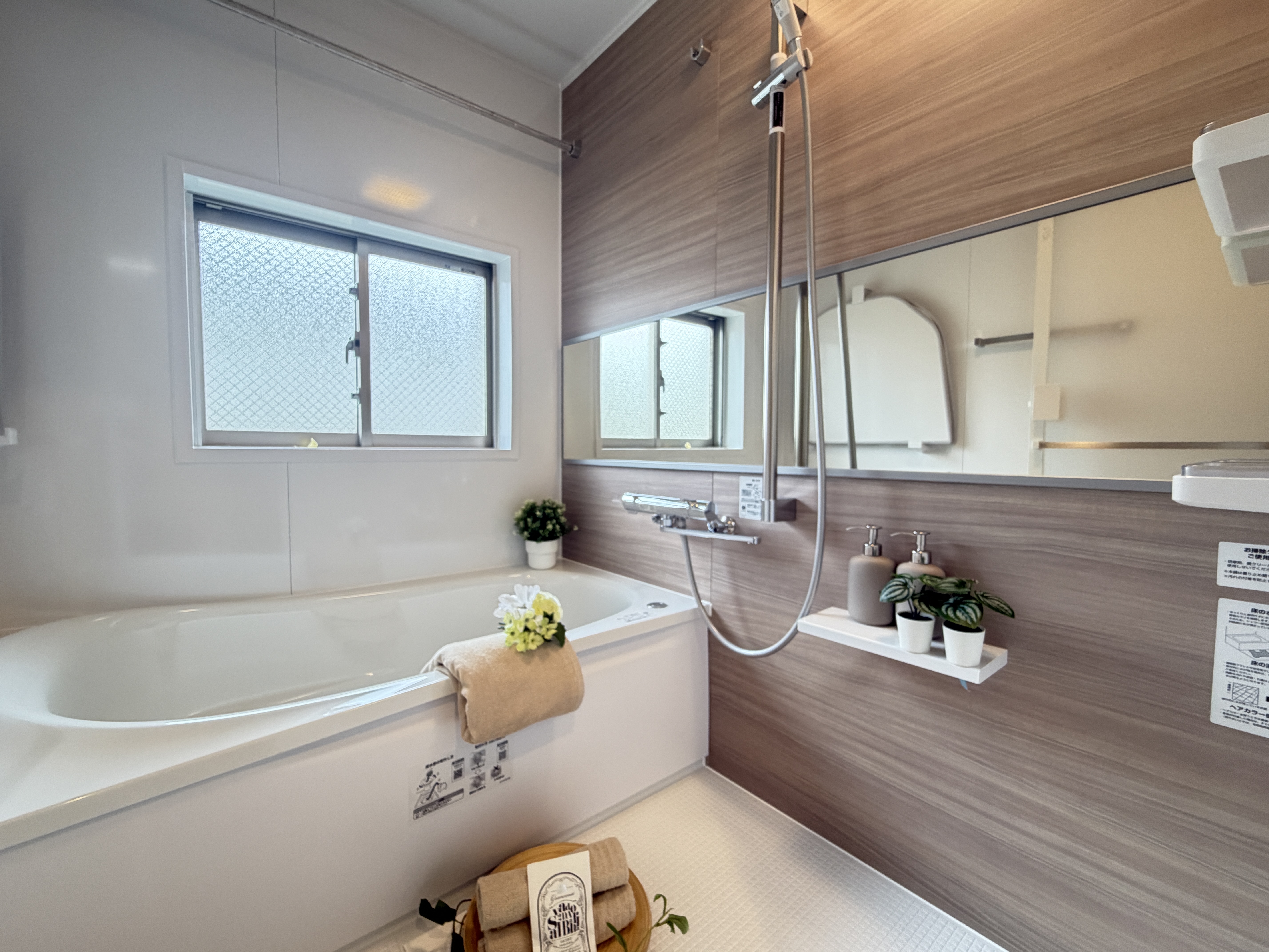 お風呂には窓があり換気が便利です!浴室乾燥暖房機・追焚機能付き