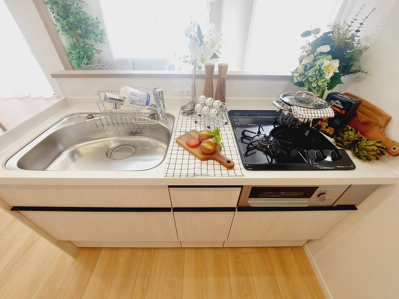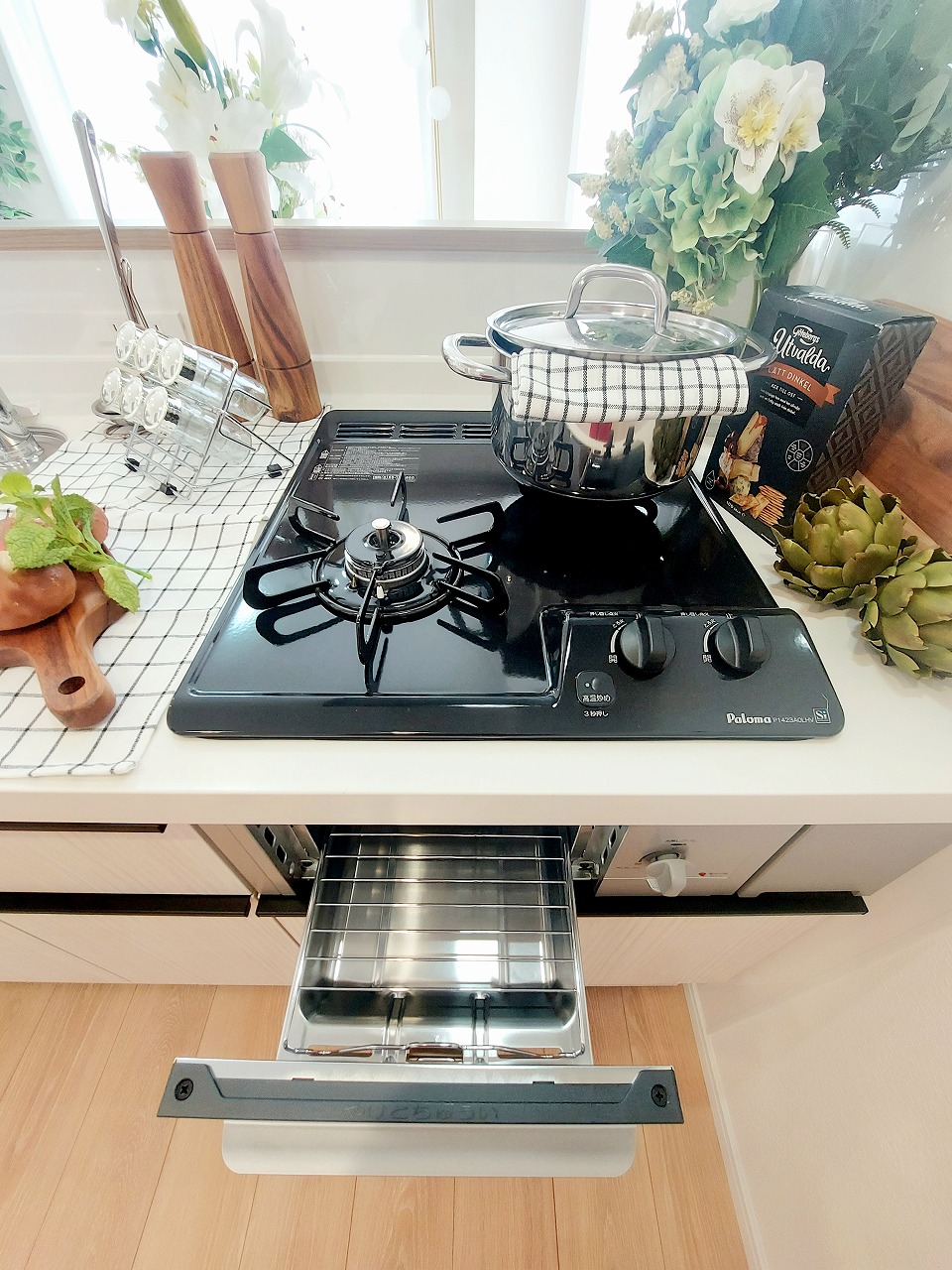 お料理のしやすい2口ガスコンロ♪グリル付き
