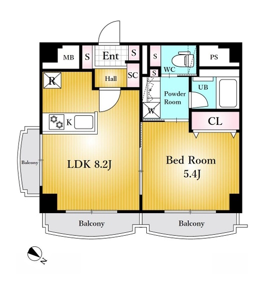 間取図 専有面積33.92平米の1LDK 8階角部屋