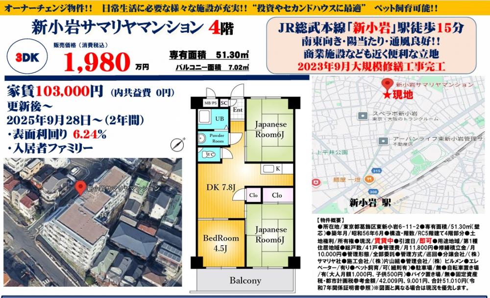 新小岩サマリヤマンション≪オーナーチェンジ≫