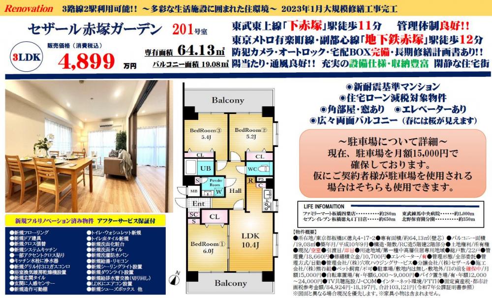 セザール赤塚ガーデン≪新規内装リノベーション実施≫の自社物件WEBチラシ情報 | 豊島区・中野区・新宿区の中古マンション・リノベーション情報なら池袋のアイベックスホーム!
