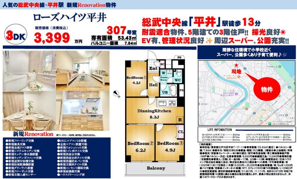 ローズハイツ平井≪新規内装リノベーション実施≫の自社物件WEBチラシ情報 | 豊島区・中野区・新宿区の中古マンション・リノベーション情報なら池袋のアイベックスホーム!