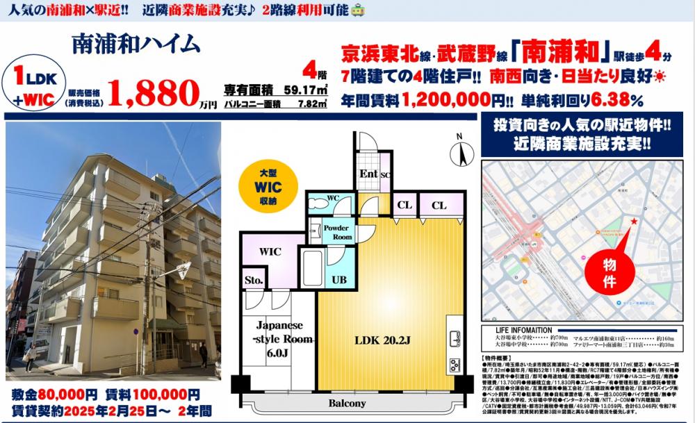 南浦和ハイム≪オーナーチェンジ物件≫の自社物件WEBチラシ情報 | 豊島区・中野区・新宿区の中古マンション・リノベーション情報なら池袋のアイベックスホーム!