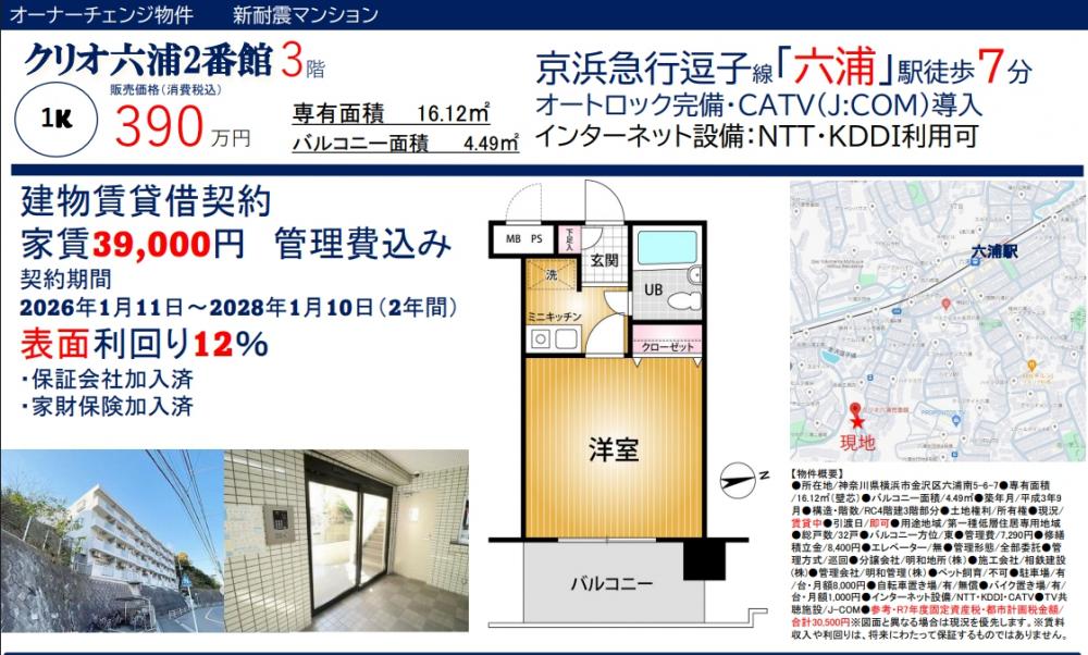 クリオ六浦2番館≪オーナーチェンジ物件≫の自社物件WEBチラシ情報 | 豊島区・中野区・新宿区の中古マンション・リノベーション情報なら池袋のアイベックスホーム!