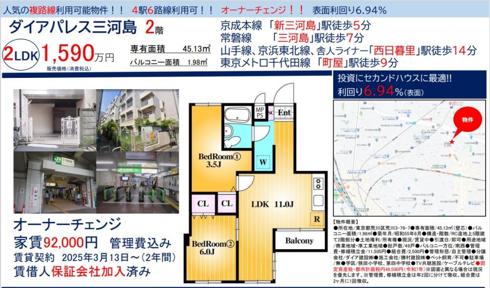 ダイアパレス三河島≪オーナーチェンジ物件≫の自社物件WEBチラシ情報 | 豊島区・中野区・新宿区の中古マンション・リノベーション情報なら池袋のアイベックスホーム!