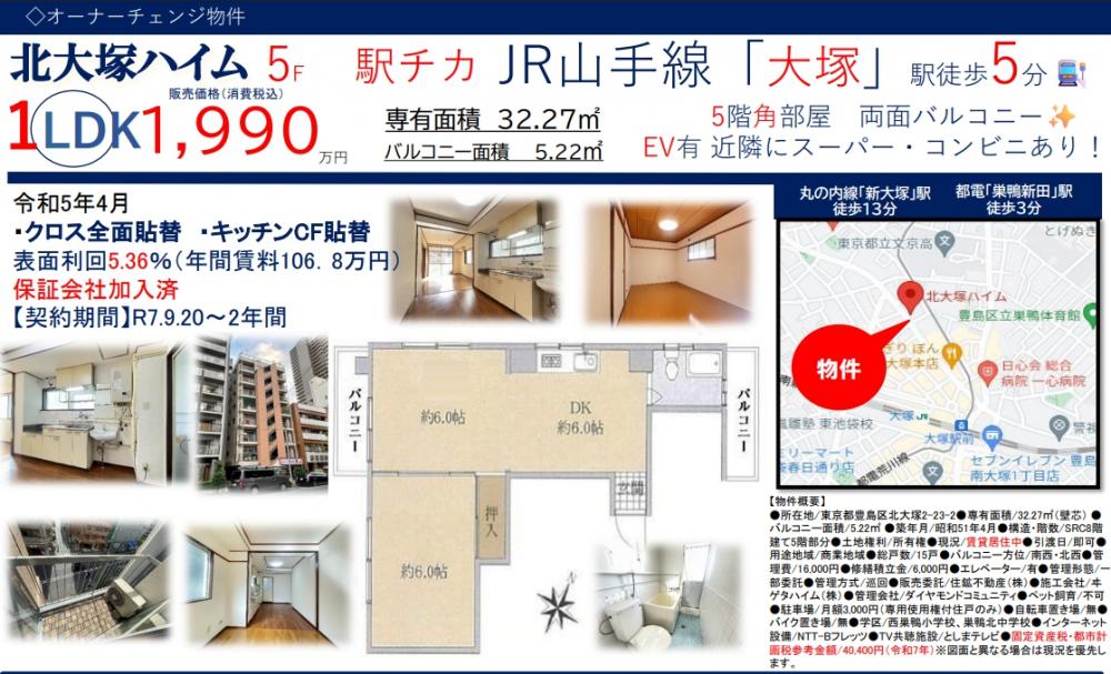 北大塚ハイム≪オーナーチェンジ物件≫の自社物件WEBチラシ情報 | 豊島区・中野区・新宿区の中古マンション・リノベーション情報なら池袋のアイベックスホーム!