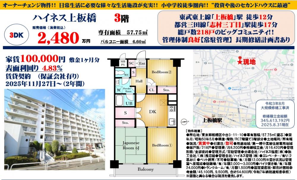 ハイネス上板橋≪オーナーチェンジ物件≫の自社物件WEBチラシ情報 | 豊島区・中野区・新宿区の中古マンション・リノベーション情報なら池袋のアイベックスホーム!