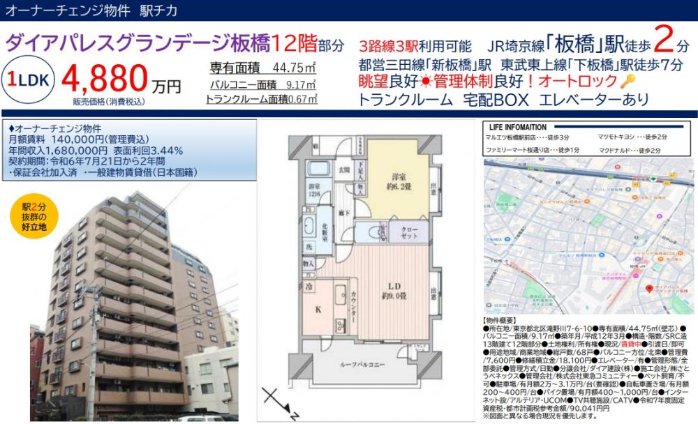ダイアパレスグランデージ板橋≪オーナーチェンジ≫の自社物件WEBチラシ情報 | 豊島区・中野区・新宿区の中古マンション・リノベーション情報なら池袋のアイベックスホーム!